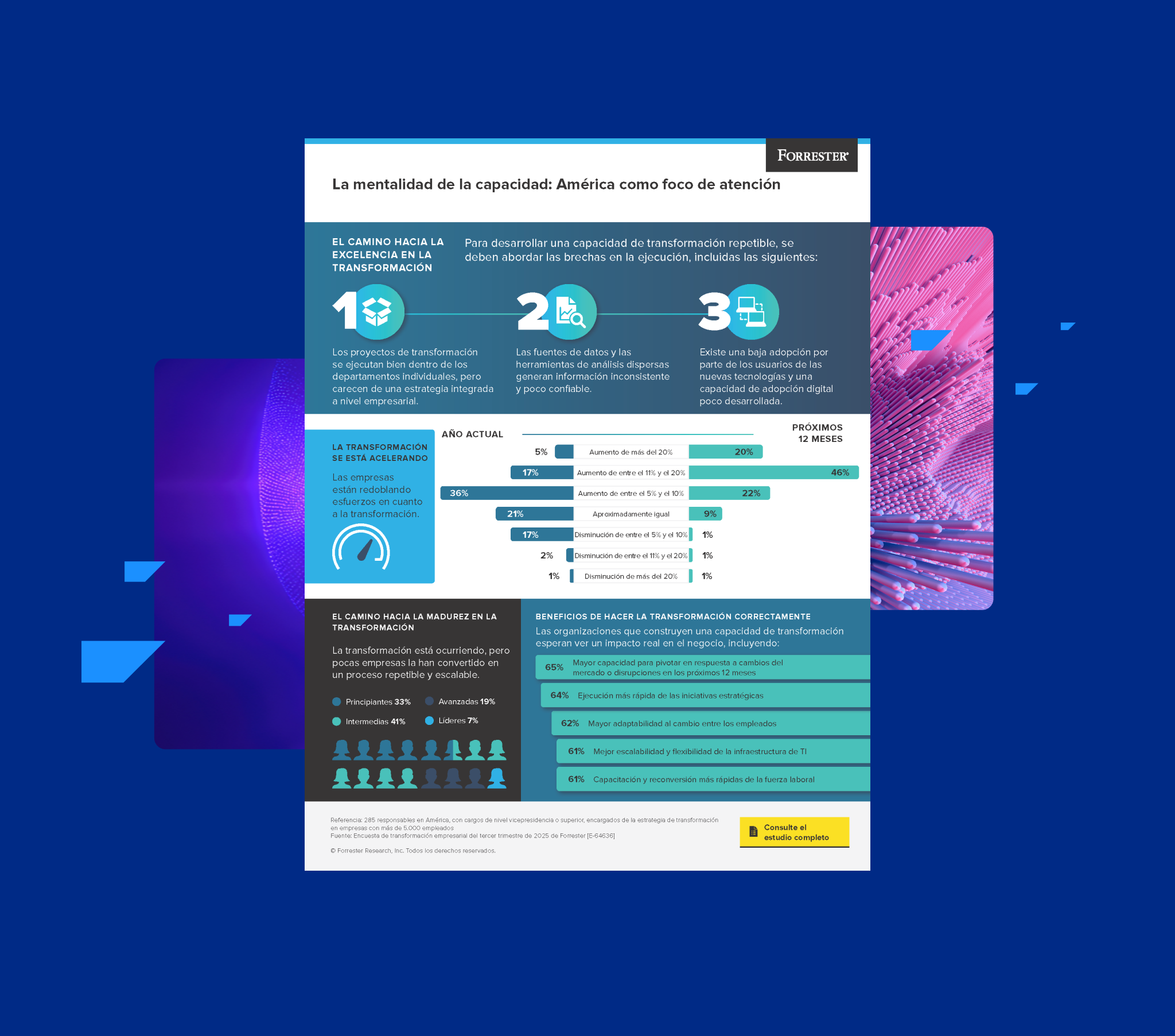 Un estudio de 2026 realizado por Forrester, encargado por SAP, revela una poderosa conclusión: dado que las organizaciones están aumentando sus presupuestos en transformación, existe la oportunidad de lograr muchas más cosas con la base adecuada. Las brechas que frenan a los negocios —estrategias desconectadas, datos fragmentados y equipos desalineados— no son obstáculos, sino puertas de entrada a un cambio poderoso. Todo lo que necesita hacer es repensar cómo se transforma.