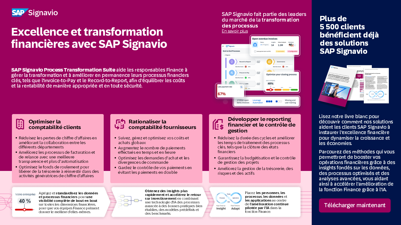 Découvrez comment les solutions SAP Signavio vous aident à améliorer la visibilité sur les processus, pour booster l'efficacité des achats et une plus grande résilience.
