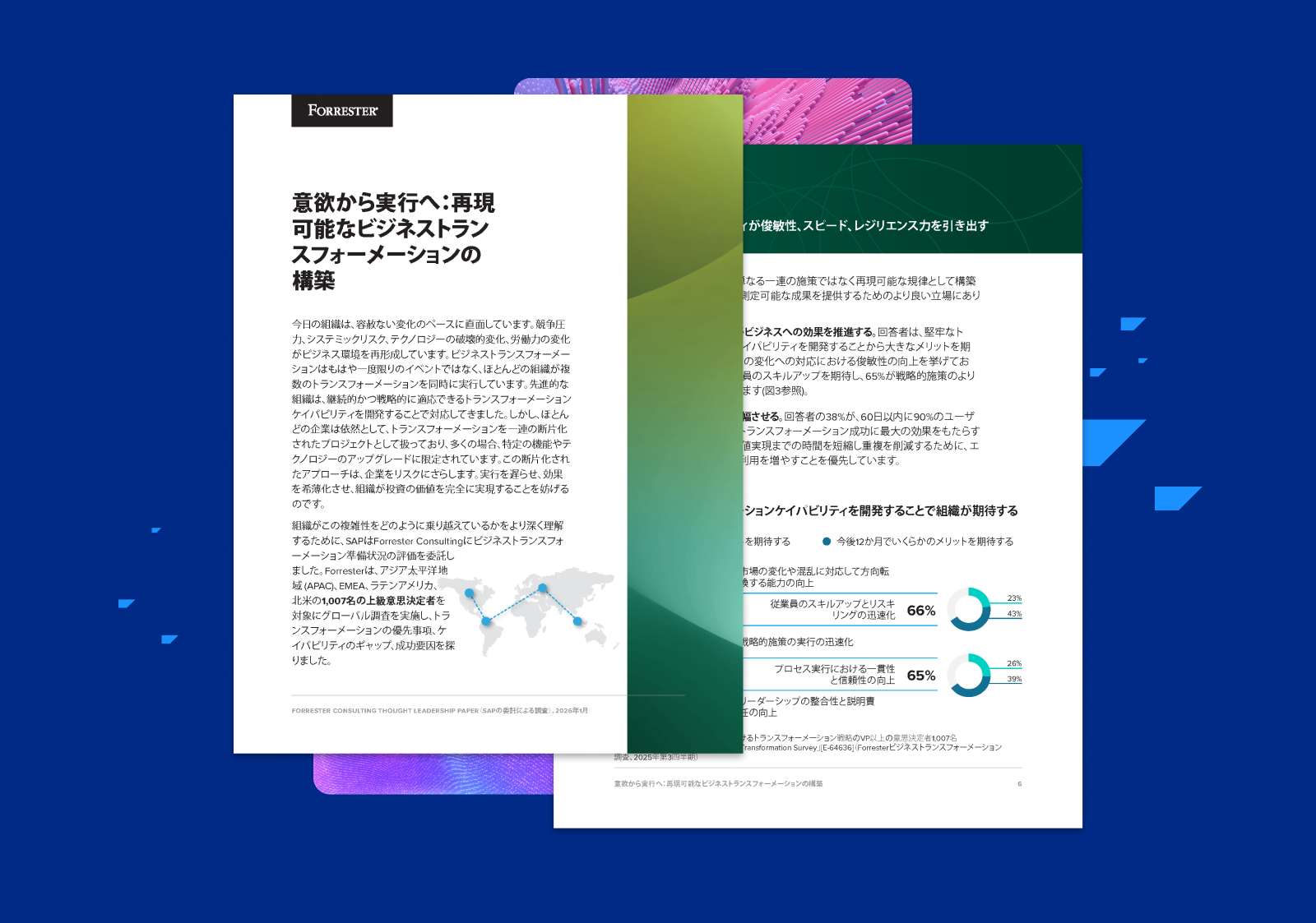 SAP の委託による 2026 年の Forrester Consulting 社の調査では、変革のさまざまな成熟度レベルを調査し、大規模な変革を実現するための実用的な手法を提供しています。