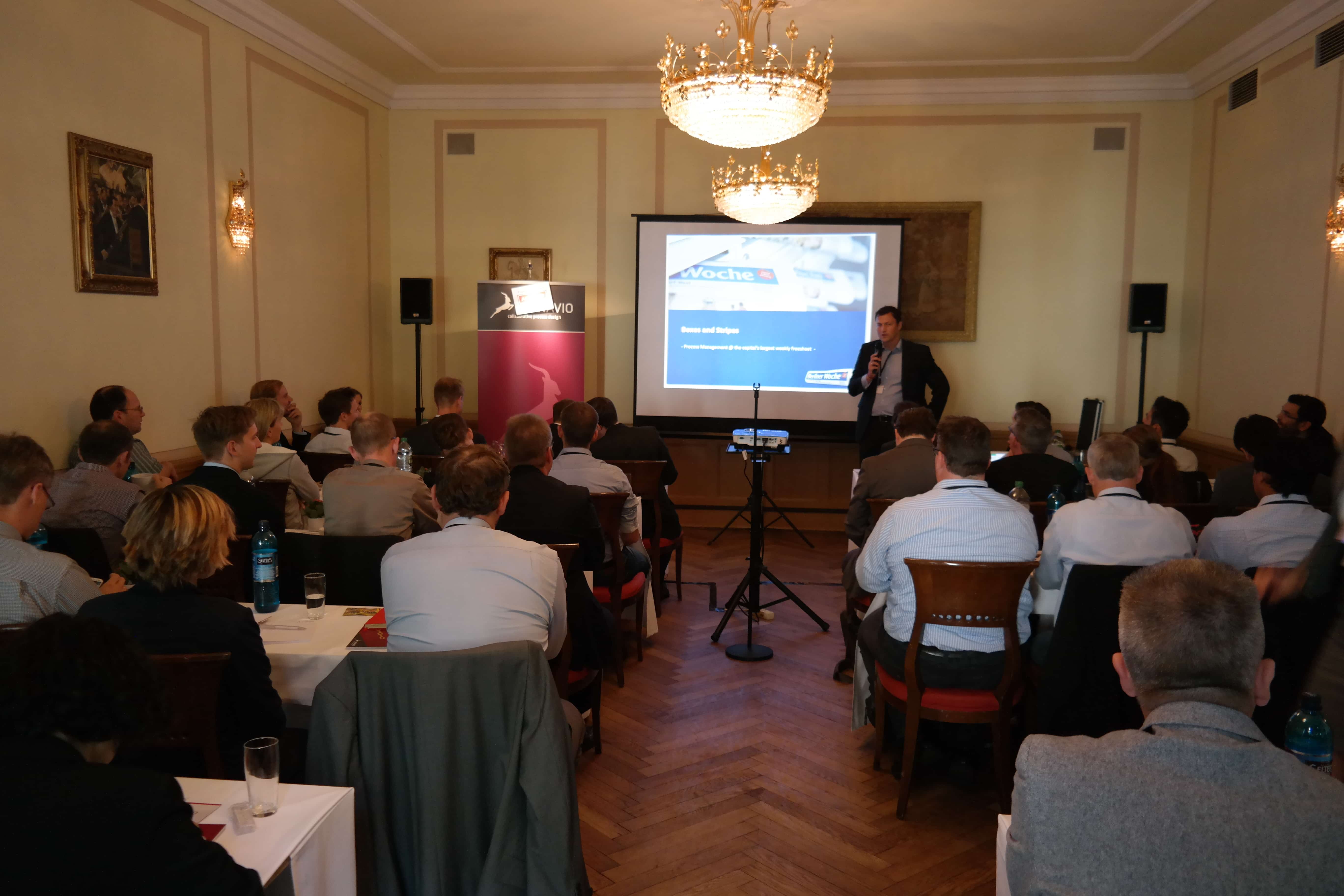 The program offered practical-experience BPM discussions, conducted by “Berliner Wochenblatt Verlags GmbH” and “Kanton Neuchâtel” from Switzerland. Each shared examples of their respective experiences with the Signavio Process Editor, and the benefits the tool brings to their organizations.