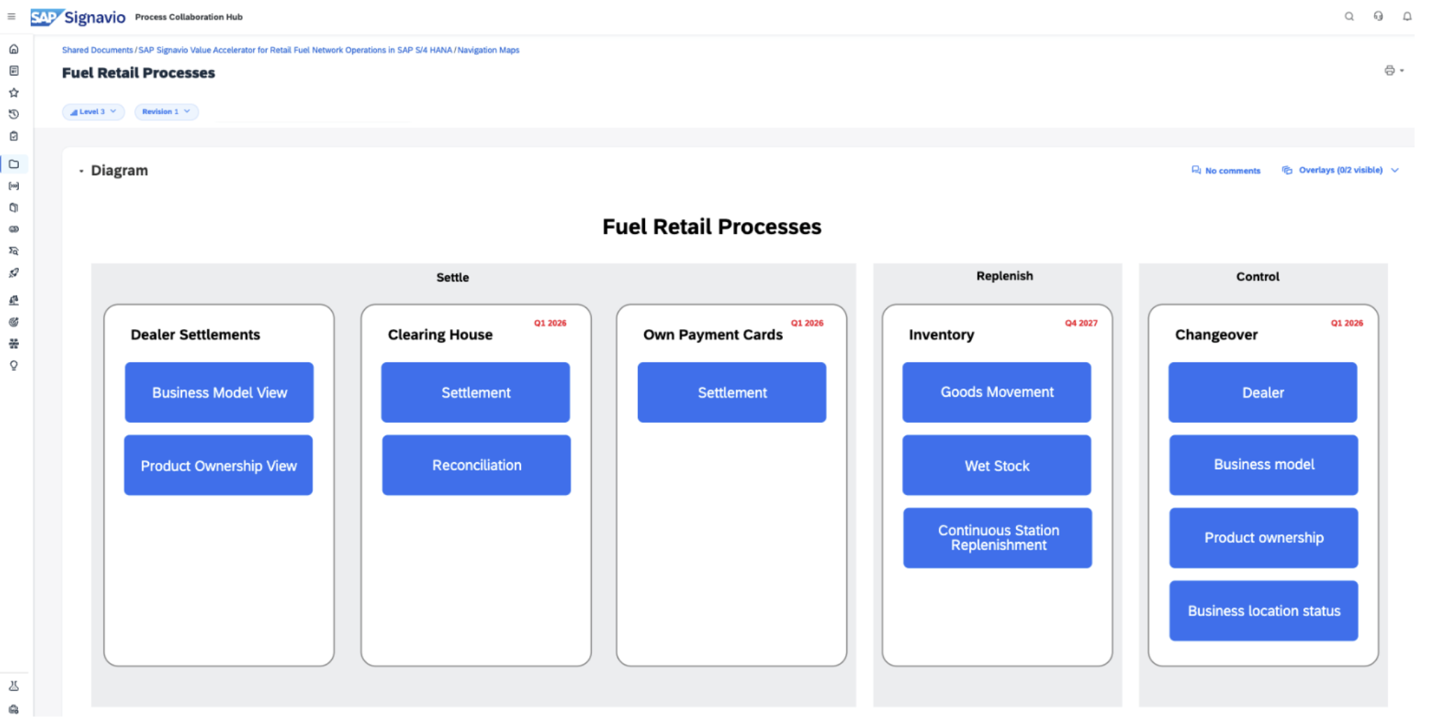 - SAP Signavio Value Accelerator for retail fuel network operations in SAP S/4HANA