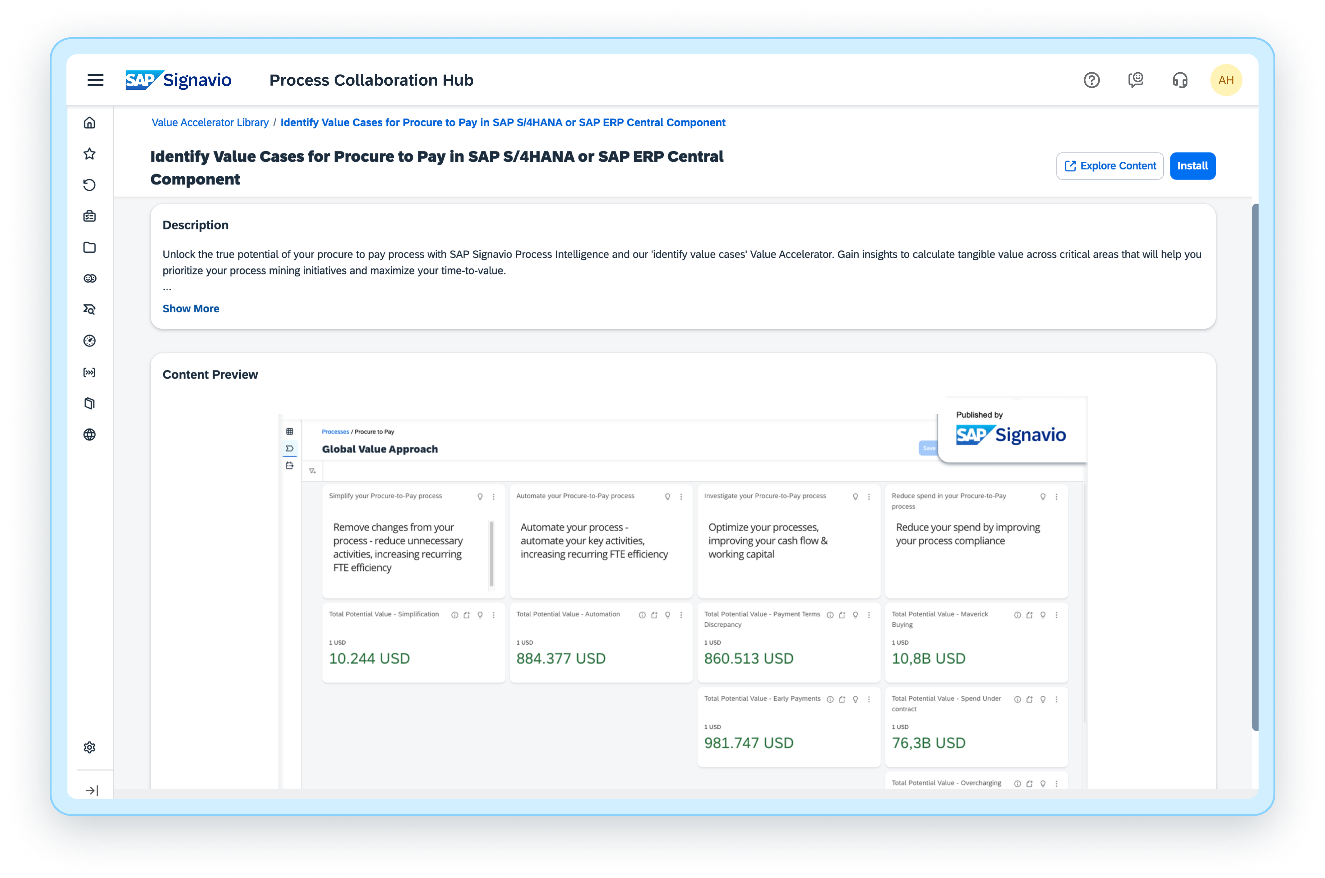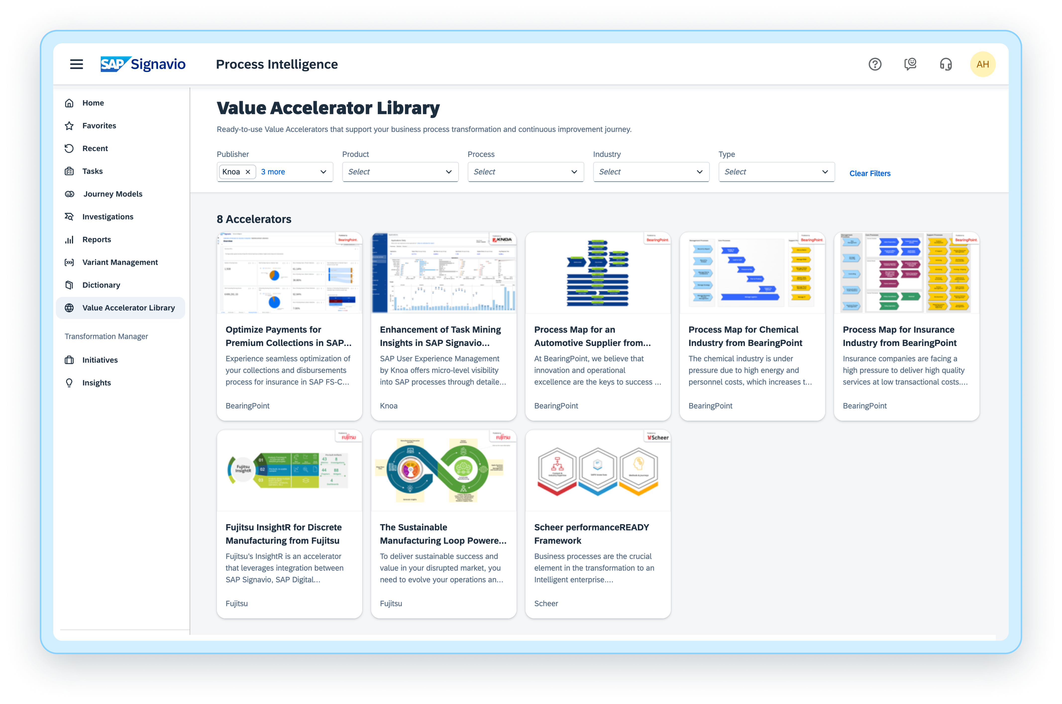 Value accelerator library for SAP Signavio solutions